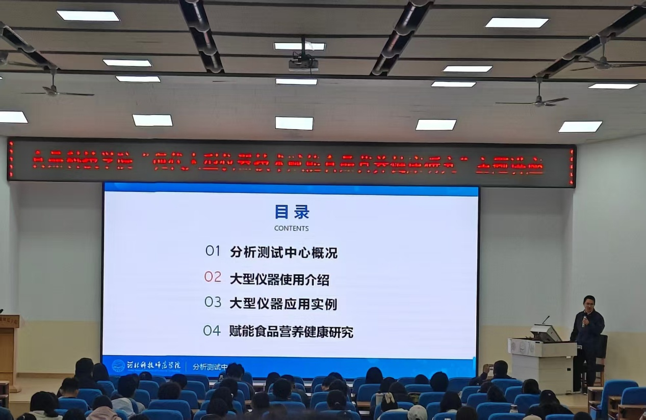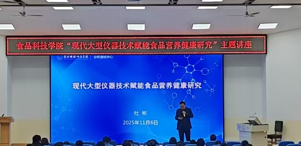 此次讲座旨在促进大型仪器技术在食品科学与营养健康研究领域的深入应用与交流。讲座内容系统全面,涵盖了分析测试中心概况、大型仪器使用介绍、大型仪器应用实例以及技术赋能食品营养健康研究四大核心模块。杜彬老师结合实际案例,生动讲解了各类大型仪器的具体型号主要功能在食品成分分析、营养评价与产品开发中的具体应用以及在我校的存放地点。