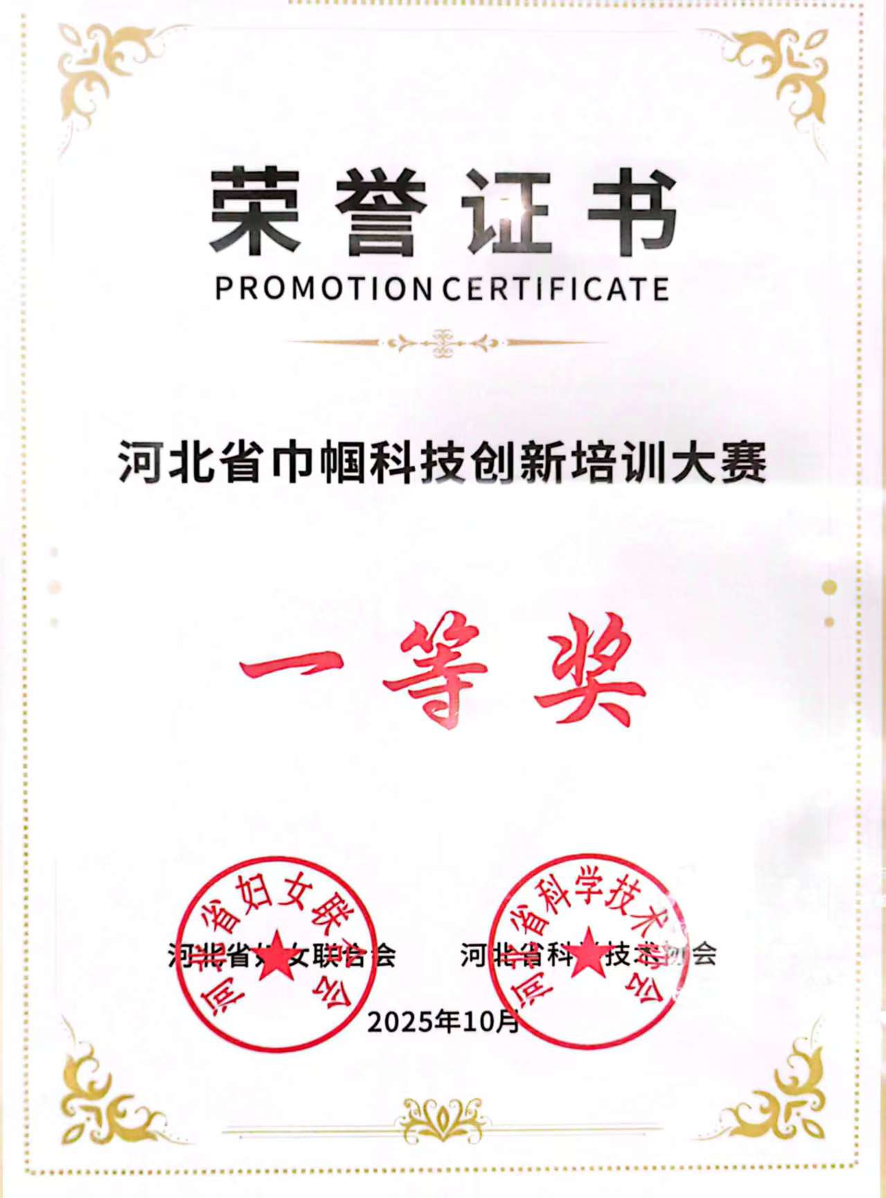一等奖证书
