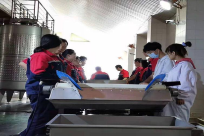 围绕葡萄酒生产各环节要求,学校为产业学院建设了完善的校内实训基地,包括葡萄前处理车间、葡萄酒酿造车间、葡萄酒贮藏车间、葡萄酒冷冻及后处理车间、葡萄酒封装车间等。采用“校中厂”的模式,让学生在到企业参与生产实践之前,在校内参加涵盖全生产流程的实践。